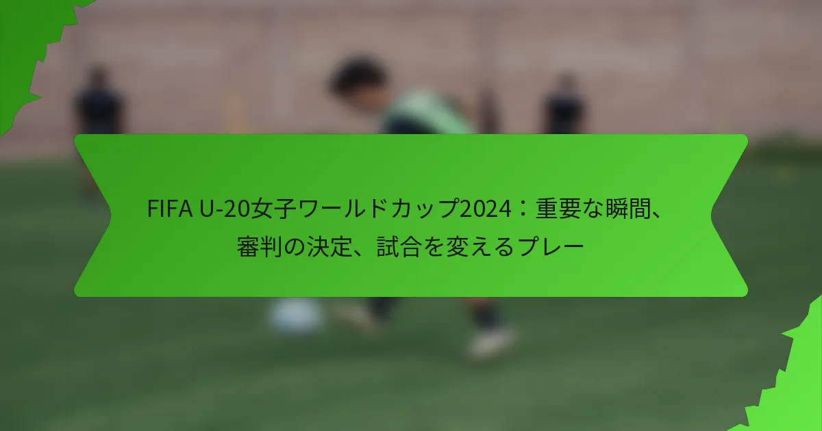 2024年FIFA U-20女子ワールドカップでは、試合の結果に大きな影響を与えた幾つかの重要な瞬間がありました。重要なプレー、審判の判定、戦術的なシフトがトーナメントを形作り、高い賭けの試合における戦略と選手の実行の重要性を浮き彫りにしました。
