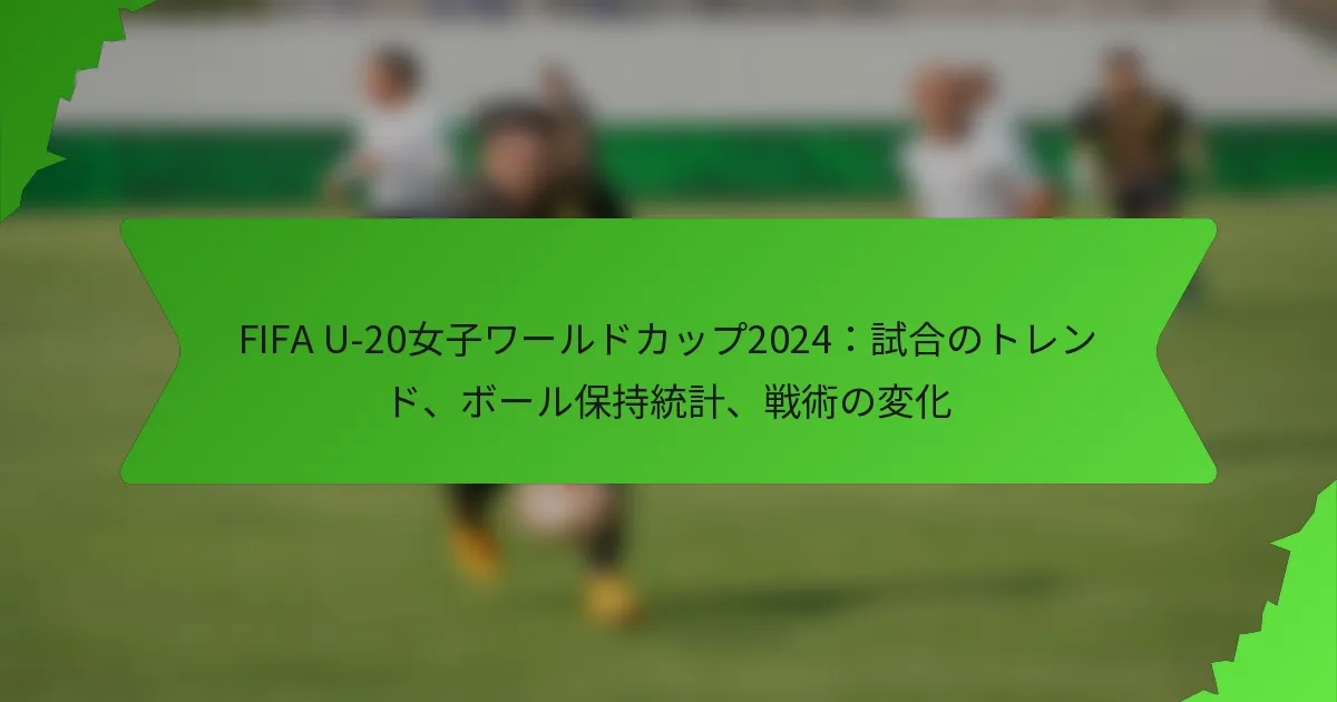 2024年FIFA U-20女子ワールドカップでは、特に戦術的フォーメーションやボール保持の統計において興味深い試合の傾向が明らかになりました。チームは相手の強みや試合のダイナミクスに応じて戦略を適応させ、多様でエキサイティングなプレーを展開しています。ボール保持は試合の結果を決定する上で重要な役割を果たし、ボール保持率が高いチームは試合のペースを支配し、得点機会を多く生み出すことが多いです。