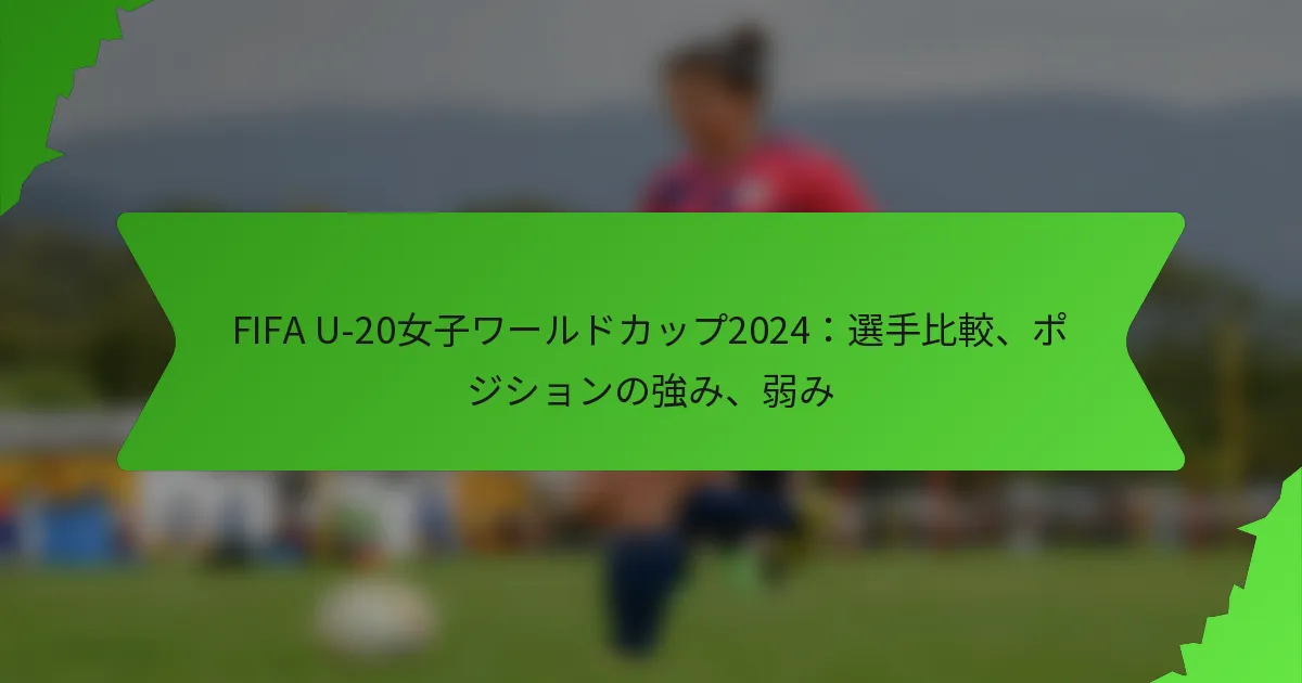 2024年FIFA U-20女子ワールドカップでは、新たな才能が披露され、いくつかの主要な選手比較が彼女たちのポジションの強みと弱みを浮き彫りにしています。これらのマッチアップを分析することで、トーナメントの結果や選手の成長トレンドについての洞察を得ることができます。