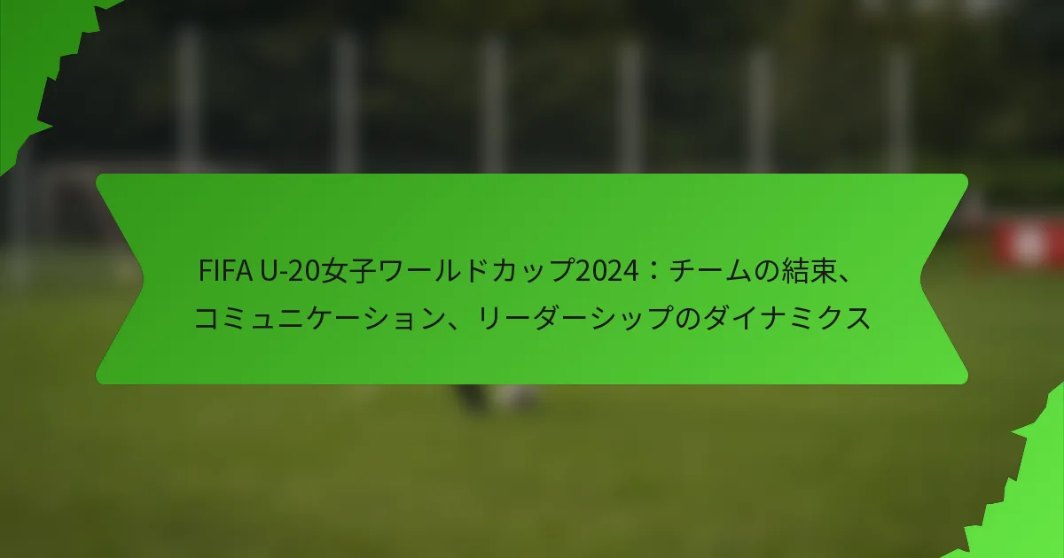 2024年FIFA U-20女子ワールドカップにおけるリーダーシップのダイナミクスは、チームの結束を促進し、パフォーマンスを向上させるために重要です。効果的なコミュニケーション、強力なコーチング、影響力のあるキャプテンシーは、若いアスリートを国際競技のプレッシャーの中で導く上で重要な役割を果たします。